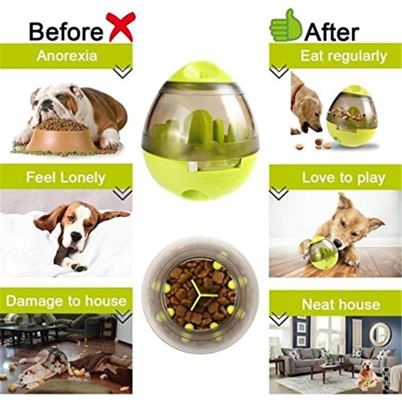 Increases IQ and Mental Stimulation, your smart dog would see ,smell,hear it and found the snacks in side the toy.It could arouse the interested and the appetites of dogs!