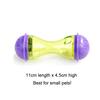 Tumbler design make it roll in a small area while playing. The dog food won`t sprinkled everywhere.