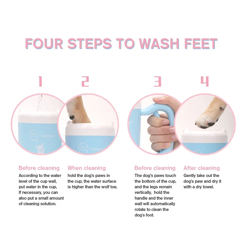 Pet foot paw cup washing cleaner with brush